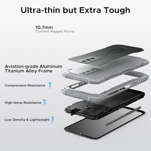 DOOGEE Blade 10 Pro Energy 4.5G Rugged Phone Android 15,10.7mm Ultra-Thin,6.56”HD+90Hz Rugged Smartphone,32GB+256GB/2TB Octa Core,6150mAh,50MP+8MP Camera,NFC/Widevine L1/Face ID/3 Card Slot,Black