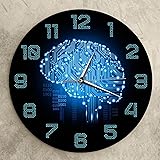 XUEQIN-YD Wall Clock Binary Code Art Intelligence Brain 12" Silent Round Wall Clock Acrylic Battery Powered Colorful Print for Home Office Kitchen Decor