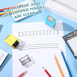 - PORTABLE, VERSATILE & TIME-SAVING Compact and easy to carry, ideal for teachers, parents, and therapists on the go. Instantly prints handwriting squares on journals, worksheets, notebooks, or handwriting practice papers. Specifications: Material: plastic Color: yellow and blue shell, black ink Package includes: 2 x teacher stamps Notes: Manual measurement, please allow slight errors on size. The color may exist a slight difference due to different screen displays