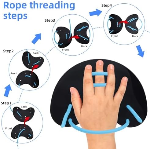 - Packing List: You will receive one pair of swim hand paddles and 1 mesh storage bag in the package. Please note that our product is pre-strung with straps when you receive it, and can be adjustable for a comfortable fit based on your palm size.