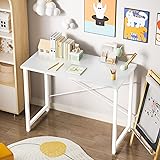 Sweetcrispy Computer Desk, Small Office 32 Inch Writing Work Study Student Teacher Home Bedroom Table with Metal Frame Wood Tabletop - White
