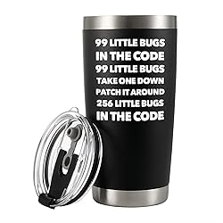Ultimate Programming Gifts: For a programmer who is so immersed in the computer all day, a nice drink in a funny tumbler will jumpstart their day. Do you want to surprise your boyfriend, dad, husband, brother, uncle, or friend who is a programmer on their special day? Or want to show appreciation to your best programmer ever? Show appreciation for their hard work with this humorous travel mug with the quote “99 Little Bugs In The Code Take One Down ” and make them laugh really hard and make them feel special. Vacuum-Insulated Stainless Steel Tumbler: This travel tumbler maintains the temperature of your favorite hot or cold beverage like a champ, thanks to its double-wall insulation. It is vacuum insulated for 2X cold and heat retention compared to glass or plastic containers. Uses food-grade stainless steel very safe to use. The removable clear lid can keep your drink's temperature for extended hours making you enjoy your drink more. Perfect to use at home, kitchen, office, work, or school. Funny Gift: Best funny gift to your friends and family who is a programmer, programming student or teacher during birthdays, family reunion, Valentine’s, retirement, holidays, wedding anniversaries, Christmas, work events, or any special milestone that occurs in life. Great item for your loved ones who can relate to this loving message and make them smile every time they use it. Top Grade Quality: Drinks stay cold for 24 hours and hot for 12 hours perfect for on-the-go hydration. Has a premium powder coat that provides crisp vibrant color reproduction, it will always look brand new even for years. Double-wall insulation keeps the exterior sweat-free so you won't have to worry about the tumbler becoming slippery when holding, your bags staying dry, or leaving water rings on your table. We use food-grade 304 Stainless Steel BPA-free, will not rust, and are safe to use. Includes Straw and Cleaning Set: Healthy stainless steel straw alternative to disposable straw. Because they come with brushes, washing with soap and water is a snap.