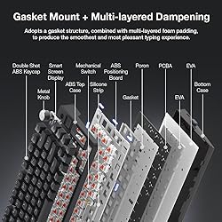 GASKET-MOUNTED DESIGN FOR SMOOTH TYPING: Enjoy an ultra-comfortable typing experience with TECWARE's gasket-mounted construction, providing reduced vibrations and smooth keystrokes for a quieter, satisfying feel. Ideal for gaming and productivity, this mechanical keyboard ensures comfort during long sessions. CUSTOMIZABLE LCD DISPLAY WITH SOFTWARE CONTROL: Elevate your gaming setup with the TECWARE Phantom S’ customizable LCD display. Easily show system stats, GIFs, or animations, and fine-tune settings through dedicated software support for full personalization. THREE MODES OF CONNECTIVITY FOR VERSATILE USAGE: Connect effortlessly via Bluetooth 5.0, 2.4GHz wireless, or USB-C wired mode for stable, low-latency performance. Switch modes quickly between gaming and productivity tasks without compromising on speed. TECWARE RED SWITCHES WITH LINEAR FEEL: Equipped with TECWARE’s pre-lubed Red switches, this mechanical gaming keyboard offers a smooth, linear typing experience with an actuation force of 45 ± 8gf. Ideal for fast-paced gaming, it guarantees fast keypress registration and up to 50 million keystrokes. EXTENDED BATTERY LIFE AND RGB LIGHTING: Powered by a 4000mAh battery, the Phantom S offers up to 400 hours of use in wireless mode, ensuring you stay powered throughout your longest gaming sessions. Enjoy fully customizable RGB backlighting with dynamic effects for a personal touch.