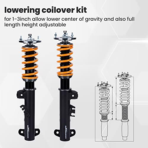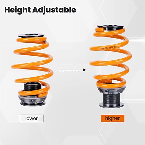 - 【Adjustable Height】 Thread-type ride height adjustment for 1-3 inches(does not keep the original ride height), allowing you to have a more aggressive stance. This design helps eliminate turning noise and also improves steering feel and response