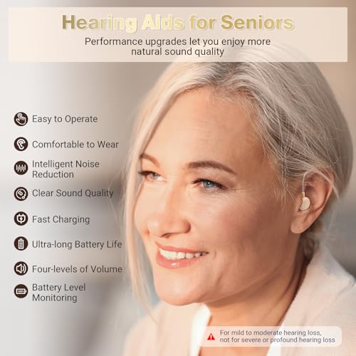 [Upgraded] Hearing Aids for Seniors,Rechargeable Hearing Amplifier with Noise Cancelling,Adjustable Volume Control,One Pair Hearing Assist Devices with Charging Box