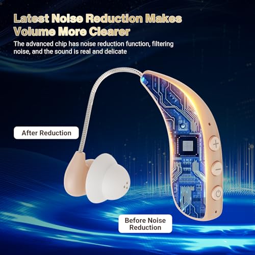 - Advanced Noise Cancellation:This hearing aid has a built-in smart chip with multi-directional noise reduction to eliminate annoying howling or buzzing. With the intelligent noise reduction function of our hearing aids, you can enjoy natural sound quality without background noise or howling, hear every word clearly, and confidently chat with family, friends, colleagues, watch TV, etc