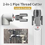 🔩🔧【 Front Before Integrated Internal & External Pvc Pipe Threading Tool Set 】 Say goodbye to tool-switching hassles! Our threading tool effortlessly creates both internal and external threads in one go. Available in 1/2" or 3/4" sizes for the perfect fit, it ensures fast, precise pipe prep every time. 🌈🌈✨ Size: 1/2: 92 * 18mm / 3.62 * 0.708in, 3/4: 92 * 24mm / 3.62 * 0.944in 🔩🔧【 High-Quality & Heavy-Duty Alloy Build 】 Forged from high-hardness 40cr alloy steel, our threader stays sharp and precise through heavy use. Enjoy stable threading with zero slippage or misalignment—engineered for perfection 🔩🔧【 Easy to Use and Install 】 Pipe thread maker tool applicable to pvc pipes, plastic pipes, and water pipes with a thickness of 2cm or more. Fast and sharp, improves thread processing efficiency, designed with ergonomics in mind, providing a natural and comfortable grip for long-term use 🔩🔧【 Electric Drill Compatible Pvc Pipe Threader Kit 】 Featuring compatibility with electric drills, this kit allows you to complete pipe threading tasks quickly and accurately. This compatibility reduces the time and effort needed for threading tasks, while ensuring clean, professional results 🔩🔧【 Universal Pipe Compatibility Threader Tool Set 1/2 3/4 1 Npt 】 Whether you're working with ppr, pvc, plastic, or mpp pipes, this tool delivers flawless results. Perfect for plumbing repairs, DIY upgrades, and electrical conduit installations—versatility at its good 🔩🔧【 Lightweight and Portable Tools 】 Thanks to its lightweight design, this pvc pipe threader kit is easy to transport, making it the ideal choice for plumbers and DIY enthusiasts who frequently work on the go. Whether you are on a job site or at home, this tool is the perfect companion for your pipe threading needs
