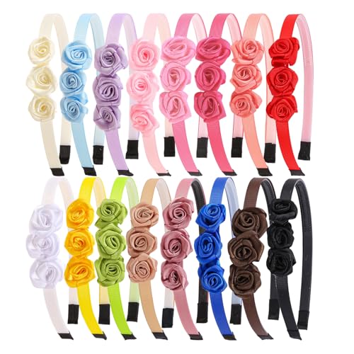- COMPLETE SET: Package includes 16 rose flower headbands in various colors including white, blue, purple, pink, red, yellow, green, brown and black,all colors are cute and beautiful