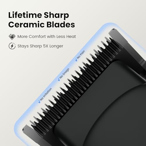 - 【Barber-Grade Cutting Performance】Our self-sharpening ceramic blades outperform traditional steel blades, maintaining much sharper edges that effortlessly glide through thick/coarse hair without painful pulling. Naturally rust-proof and easy to maintain (simply rinse after use). 7500RPM high-torque motor delivers precise, quiet, and vibration-free cutting for smooth fades & outlines. Achieve salon-quality haircuts at home, perfect for men’s buzz cuts, beard lines and kids’ trims.