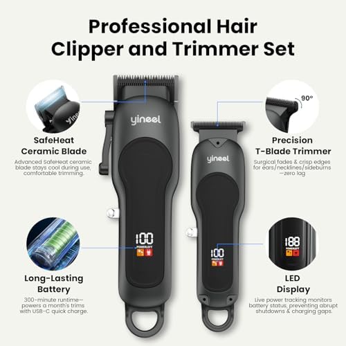 Yineel Hair Clippers for Men, Professional Cordless Clippers & Trimmer Set, Super Quiet, Clippers for Hair Cutting Kit with LED Display, Gift for Men Women Barber Kid