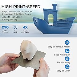 250mm/s HIGH-SPEED PRINTING: Updated Tina2 Plus up to 250mm/s Max high-speed fast 3d printer, is the first one high printing speed small 3d printers with WiFi on the market. Recommended printing speed is 150mm/s, saves your 75% time! This saves time and money and lets your creative juices flow much faster. Even Beginners can fast entry 3d printing! FULLY ASSEMBLY: Auto bed leveling fast 3d printing for beginners, Tina2 Plus is an entry-level mini 3d printer, fully assembled, no complicated installation and setting as other larger 3d printers, out-of-the-box. You can fast start printing in a minutes! Make it easy to start printing good-quality prints. SMART WIRELESS PRINTING: Tina2 Plus 3D printer is equipped with the newest self-developed APP "Poloprint Cloud", which has a massive model library, you can slice and wifi upload to print directly via your phone or Tablet. It's an ideas gift for for entry beginners, teens, and kids! FULLY OPEN SOURCE: This mini 3d printer is also compatible with Wiibuilder/Cura/Kiri(Chrome book)/PrusaSlicer software, you can diy your own models and fast upload to print on computer. For professional players, you can also us USB to edit commands and transfer to print! COMPACT DESIGN:Compact design 3d printer with full features, easy to place, does not take up your space. With 80℃max adjustable heat bed, quick release nozzle, 40S fast heating filament, 10,000rpm high speed fan to help fast cool at high speed printing, ensures rapid cooling down of the models and a fast printing experience.