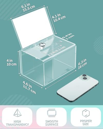 - Convenient Slot: The acrylic donation box features a slot (3.2" L x 0.4" W) on its top, allowing for easy insertion of any small and thin item. Perfect for accommodating ballots, suggestion notes, donations, or change without opening the box