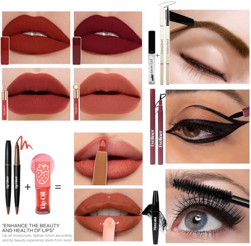 - [Super Value Pack - 24PCS Make up advent Calendar] Our Make up set with 24 PCS surprise for every day. The variety available is perfect, lots of nice makeup for the holidays in every day, inclued eyeshdow x 2,matte lipstick x 2,lip liner x 2,blush x 2,contour x 1, highlighter x 1,eyebrow pencil x 2,eyebrow gel x 1,mascara x 1, makeup sponge x1,lipgloss x 2,eyeliner x 1,hair tie x 1, lip oil x 1, makeup pad x 1, compact mirror x1,brush x 2.This Makeup Set for Teen Girls and Women is neatly packaged in individually numbered gift boxes.