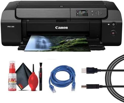 Canon PIXMA PRO-200 Wireless Inkjet Photo Printer | 13x19 Borderless Printing | 8-Color Dye Ink | Fast A3+ Output | Compact for Photographers & Artists (4280C002) + Printer Cable + Ethernet Cable