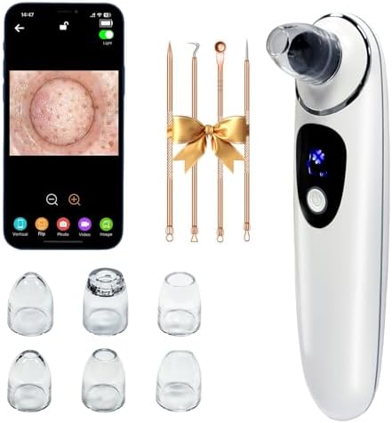 2025 Pore Vacuum with Camerafor, USB Rechargeable Blackhead Remover Vacuum,3 Levels Adjustable Pore Vacuum Blackhead Remover, 6 Suction Heads,Face Vacuum Pore Cleanser for Women & Men