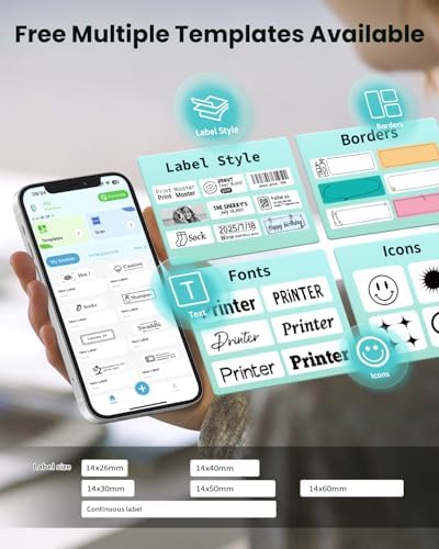 - 3.Smart Labeler with Multiple Templates: This versatile label printer works with iOS and Android (Phone and Tablet). Create custom labels with icons, text, tables, symbols, logos, barcodes, QR codes, images, timestamps, Excel imports, scanning, OCR, and voice recognition. You can easily create a variety of cute and practical labels