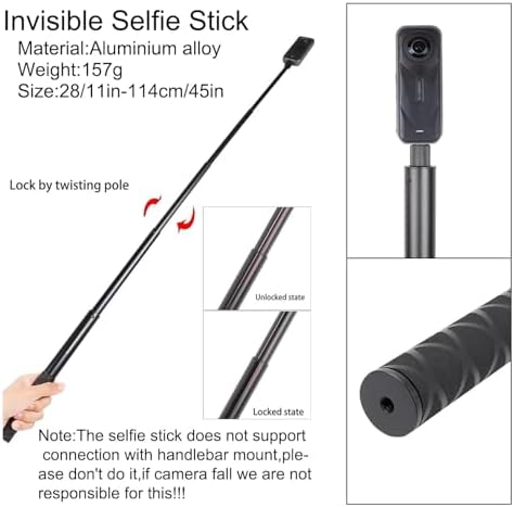 - 【113cm/44.5in Aluminium Alloy Invisible Selfie Stick】5 sections adjustable,adjustable length: can be retracted to 28 cm (11.02ches) or extended to 113 cm (44.5 inches),ratation to left to tighten and lock the length,It can stay at any length,the top of selfie stick has a 1/4" screw interface,in can provide stable shooting staus