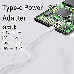 Input 100 – 240V AC, 50/60HZ 0.8A Max; Connector: USB-C; Cable: 1.8,M Output 5.1V/5A, 9V/3A, 12V/2.25A, 15V/1.8A Compatible with Raspberry PI 4 , Raspberry PI 4 Power Supply USB-C PD 27W Power Adapter Safety Charging :Eaneey chargers are put through rigorous quality control procedures to ensure safe, reliable operation for years to come. CE/FCC/RoHS certified for safety, with protection against short circuiting, overvoltage, overcurrent, and internal overheating.We guarantee our products will charge your device as efficiently as the original charger, or any other replacement. Compact and Portable - Designed for convenience, the compact form factor of the adapter makes it easy to carry, ensuring you have a reliable power source wherever you go. Hassle-Free Warranty:Eaneey Charger comes with a 1-year warranty, 60-day money-back guarantee, and 24-hour email support. If for any reason you are not completely satisfied with your purchase, please just let us know and we will replace it or refund your money!