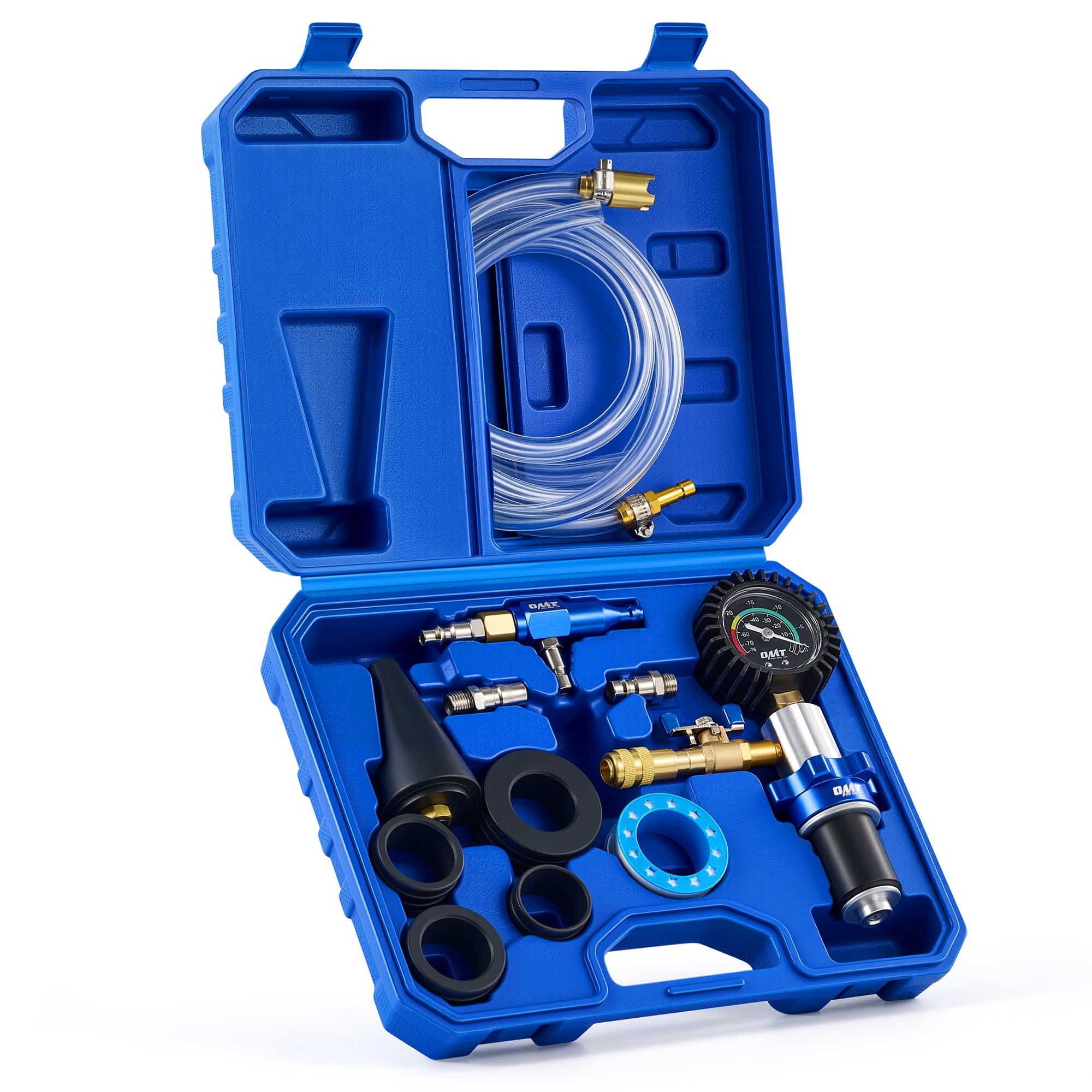 • Comprehensive Tool Set: Orion Motor Tech's 31 pcs coolant pressure tester kit includes 22 adapters, a universal adapter, a vacuum pump, a vacuum purge & refill tool, a probe thermometer, a wrench, EU & US air intake joints, O-rings, and hoses