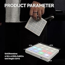 Powerful MIDI Controller: SMC-PAD POCKET, MIDI Controller Percussion Pad, 16 RGB backlighting supports force sensing and aftertouch percussion pads, responsive, flashing light following the music for seamless and precise control of music production,You can also customize the backlighting color of the cushion to add a personal touch! Wireless Creation Portable Controller: Supports pressure/velocity, Deeply compatible with DAWs One-click mapping of major music software Pre-configured templates for Ableton Live, FL Studio, Logic Pro, and more, you can take it to any venue and create music on the go.: wireless Bluetooth connection, can also be connected via USB-C data, wireless MIDIOUT function; support for wireless connection Windows/Mac/ios/Android, multi-software operation, creation is more free!Low latency, stable transmission, plug and play anytime, anywhere,Compatible with all digital audio workstations, it's a must-have tool for music producers! Portable controller: Supports pressure/velocity custom adjustments for an authentic drumming experience Rechargeable and connectable modes, you can easily throw this ultra-portable MIDI controller into almost any bag Measures only 4.1*4.1 inches, 0.28 pounds ,Deeply compatible with DAWs One-click mapping of major music software Pre-configured templates for Ableton Live, FL Studio, Logic Pro, and more, you can take it to any venue and create music on the go. Built-in rechargeable battery: Portable design, built-in rechargeable battery, up to 8 hours of continuous use, anytime, anywhere music creation. Warranty :One year Warranty; Please ask us if you have any problem with the product, we will help you to solve it! Note: Amazon return windows will close after one month, please click on seller store on right corner “ask a question”.
