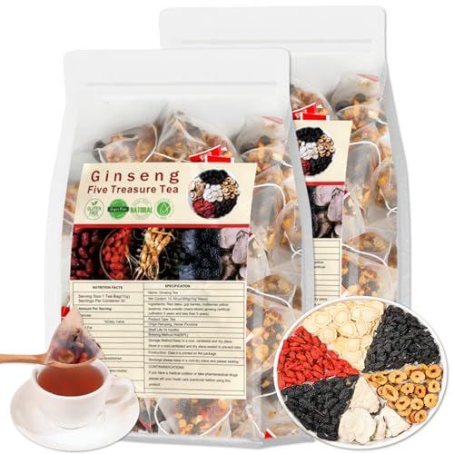 - Ingredients: The Ginseng Five Treasures Tea combines the health benefits of ginseng, wolfberry, maca, yam, red date and yellow essence.
