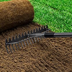 ✅ 【17-inch wide double-sided heavy-duty rake】 Reversible for dual use! Heavy-duty long tines are ideal for handling debris (such as leaves, weeds, gravel, and construction waste), while the short tines are perfect for leveling fine soil and preparing for sowing. Two tools in one, eliminating the need for two separate tools! Twice as fast as a standard rake! ✅ 【Stainless Steel Metal Rake】The rake head, tines, and handle are all made of sturdy rust-resistant alloy material and coated with a rust-proof and corrosion-resistant coating. The 1-inch shaft diameter ensures sufficient strength for daily gardening tasks without bending. ✅ 【Adjustable Height for Comfort】 The rake head length is adjustable by adding or removing short extension rods! Say goodbye to back pain—work standing up or easily clean narrow spaces. Suitable for all ages and heights. Can be easily disassembled to a smaller, more portable size. ✅ 【Lightweight and fatigue-free】 This rake is lightweight and durable, designed for long-term use. You can garden for hours without feeling arm fatigue—suitable for the elderly and women. ✅ 【After-Sales Service】 EUIJOIP provide 9999 days after-sales guarantee service, free replacement for non-man-made damage, solve your worries. ✅ 【ALL-SEASON YARD WARRIOR】 Crush fall leaves, prep spring gardens, smooth gravel paths, clear snow mulch. Even works in wet conditions! ✅ 【MULTI-TERRAIN GARDEN BEAST】 Tame lawns, gravel, mulch beds & uneven dirt. Great for spring cleanup, fall leaves, fire pit ash, and pet area maintenance!