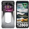 Ulefone Armor 30 4G Android 15 Rugged Phone, 24GB+512GB, 6.95" FHD 120Hz Screen, 1236LM Versatile LED Light, 64MP Night Vision+50MP+50MP+32MP Camera, 12800mAh 66W, Infinite Halo, IP68/IP69K/NFC Black