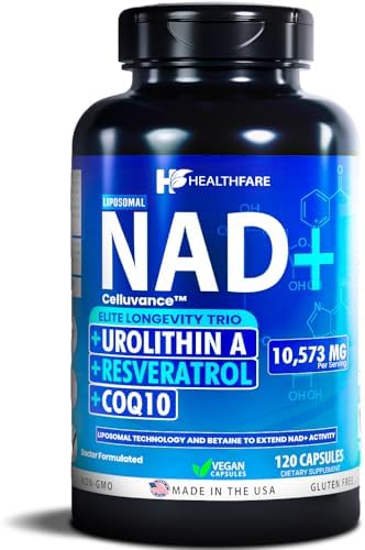 Healthfare 10,573mg NAD Supplement, Resveratrol, CoQ10-120 Capsules NMN Alternative Liposomal High Absorption Formula | Betaine for Anti-Aging Extended Effects - Cellular Energy, Skin for Women & Men