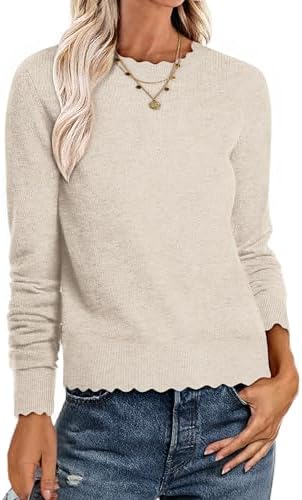 ANRABESS Sweaters for Women Loose Fit Lightweight Soft Dressy Scalloped Long Sleeve Pullover Tops 2025 Fall Casual Outfits