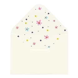 50-Pack Set – Includes 50 high-quality white kraft paper envelopes with floral print liner A7 envelopes, each measuring 5.25" x 7.25" A7 Envelopes for 5" x 7" Cards – Perfect for birthdays, weddings, invitations, baby showers, bridal showers, and graduation. Luxury Design – Elegant V-flap with a foil liner on the front for a stylish and classy look and also inner flap of the envelope has floral design Quick Adhesive Closure – It features pre-applied adhesive glue that ensures easy, secure, and wrinkle-free sealing. Thick and Durable – Made with 120 gsm premium paper to protect contents during mailing without bending. Ideal for Greeting Cards & Photos – Standard A7 size envelopes designed for 5" x 7" cards and photos.