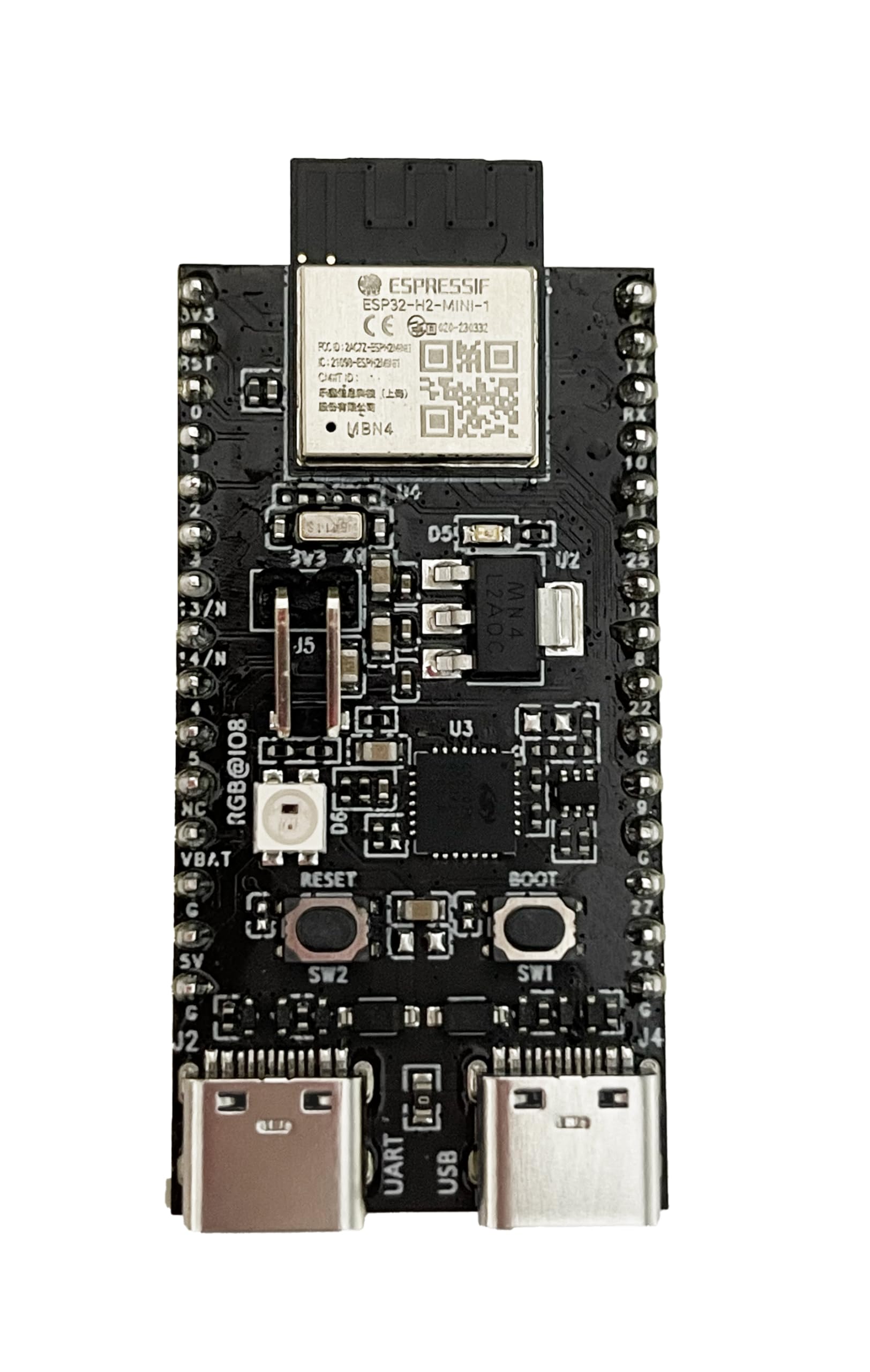 ESP32-H2-DevKitM-1 is an entry-level development board based on Bluetooth Low Energy and IEEE 802.15.4 combo modules ESP32-H2-MINI-1, chip revision v1.2 and above, 4 MB flash.