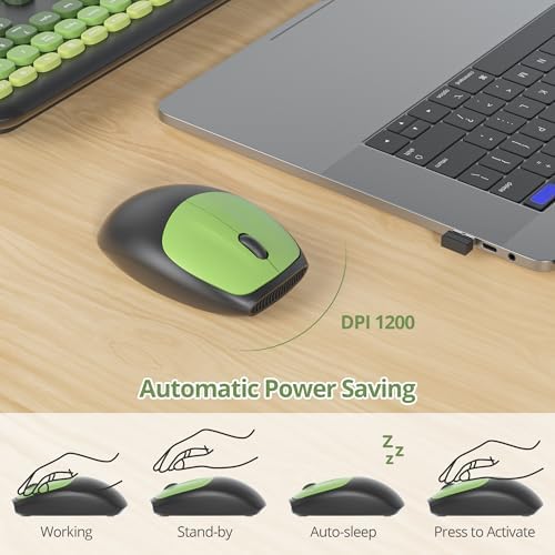- Quiet Typing Experience: Designed with low-noise keys, this cute dark green wireless keyboard and mouse ensures minimal disturbance in shared spaces. The soft keyboard feel and ergonomic layout provide a comfortable typing experience