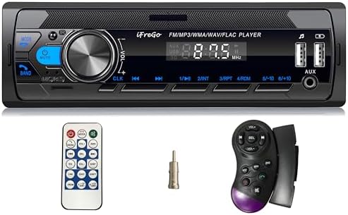 - 📻【RADIO FM AND 7 LED COLORS CAR RADIO】: The FM station search function works perfectly, quickly finding available stations and memorising you favourite ones. Save FM station: Long-press your favorite FM to store it, so you can easily access your favourite radio stations without having to search for them every time. clear and noiseless for a better listening experience. 7 color adjustable light Bluetooth car radio. The color of the car radios can be set using the button: green, blue, red, yellow, white, turquoise green, and purple.