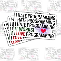 - Welcome to the daily mood cycle of every programmer. This “I Hate Programming → It Works → I Love Programming” sticker pack is the emotional debugger every dev desk needs.💻 For Coders Who’ve Been TherePerfect for developers, students, hackers, and engineers. Whether you’re stuck in a loop or just deployed on Friday, these stickers get you.🛡️ Stick It Where Code HappensPrinted on waterproof, fade-resistant vinylDurable eco-solvent print – built for dev gearGreat for laptops, towers, bottles, or tech bags