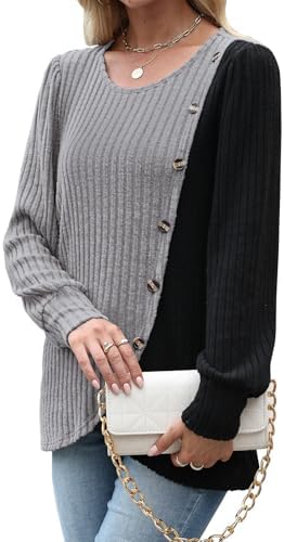 MixShe Womens Knit Sweaters 2025 Fall Winter Casual Long Sleeve Ribbed Colorblock Button Pullover Tops