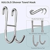 KULOLO Shower Door Hooks for Towels & Squeegee - No Drill Bathroom Hooks for Frameless Glass Door, Shiny Silver Stainless Steel with Anti-Slip Rubber (2 Pack)