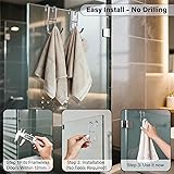 5LB Heavy-Duty Hanging: Reinforced stainless steel structure, can easily hang bath towels, wet bathrobes and full-size squeegees without bending. Industrial-grade sturdiness far exceeds plastic shower hooks Easy Installation: The towel hook's quick clip design fits frameless shower doors up to 12mm thick - no drilling, screws or adhesives required.Perfect for renters and glass door owners looking for an instant bathroom organization solution Anti-Scratch Protection: Thickened silicone pads prevent glass damage while providing a secure grip. The shower door hooks feature specially designed rubber pads to eliminate metal-to-glass contact for silent operation Multi-Functional Space Saver: The shower towel hook Holds bath towels,shower squeegees,robes and cleaning tools without crowding your bathroom. Ideal for compact showers,guest bathrooms and spa-style layouts Universal Shower Accessory: Compatible with frameless glass doors,cubicle walls and heated towel racks.Dual-purpose design works as over-door towel rack and squeegee holder in one