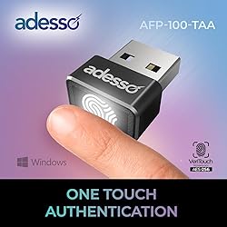 Adesso USB Fingerprint Reader Windows Hello Compatible Built-in Biometric Security AES256 Encryption Made in Taiwan TAA Compliant AFP-100-TAA