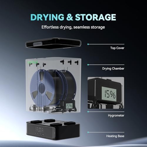 - Drying & Storage All-in-One: The SUNLU FilaDryer SP2 and base are detachable to lift apart using strap handle of storage box, which can meet the filament storage after drying. You can feed filament directly into your 3D printer while it is drying with the filament dryer, or while the filament is stored/sealed in the filament storage box