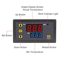 【W3230 Temperature Controller】It's a high-precision temperature controller module with led digital display, which can be used for heating or cooling control. 【Clear LED Display】High-definition display, two-color display, red shows the actual temperature, blue shows the set temperature, clear display, can be read clearly no matter it is applied in day or night. 【2 Working Modes】Digital LED temperature controller module has 2 working modes, heating mode (start temperature is lower than stop temperature) and cooling mode (start temperature is higher than stop temperature). 【Temperature Control Range】-50℃~120℃, temperature control accuracy: 0.1℃, equipped with a 1-meter NTC10K probe made of stainless steel, which is waterproof and not easy to rust, easy to use and can last for a long time. 【Wide Application】W3230 temperature switch can be widely used in temperature control systems such as household freezers, water tanks, refrigerators, steamers, and industrial equipment.
