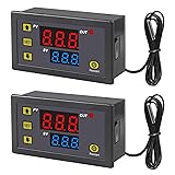 2Pcs W3230 Digital Temperature Controller DC 12V 20A LED Digital Thermostat Switch with Waterproof Probe Programmable Heating Cooling Electronic Thermostat Range from -50℃ to 120℃