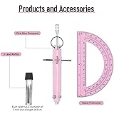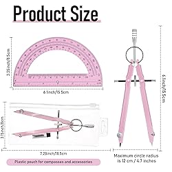 EBOOT Student Geometry Math Set, Metal Drawing Compass and 6 Inch Clear Swing Arm Protractors 180 Degree Math Protractor(Pink and Pink)