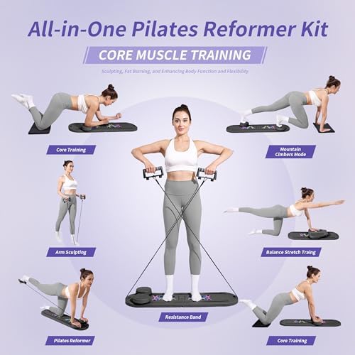- 【15-in-1 Full Body Pilates Reformer Board】 Transform your at home pilates routine with our all-in-one Pilates reformer board, featuring 15 versatile functions including core trainer, resistance bands, push-up bars, balance board, ab roller, and plank support. Designed to sculpt abs, build muscle, burn fat, and improve flexibility, this home pilates equipment delivers professional results for beginners to advanced users.