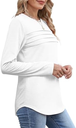 XIEERDUO Women's Pleated Tunic Tops Fall Long Sleeve Blouses Fashion Curved Hem Shirts Dressy Casual S-3XL