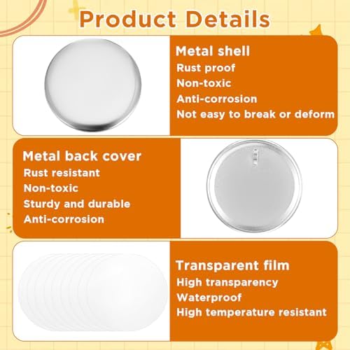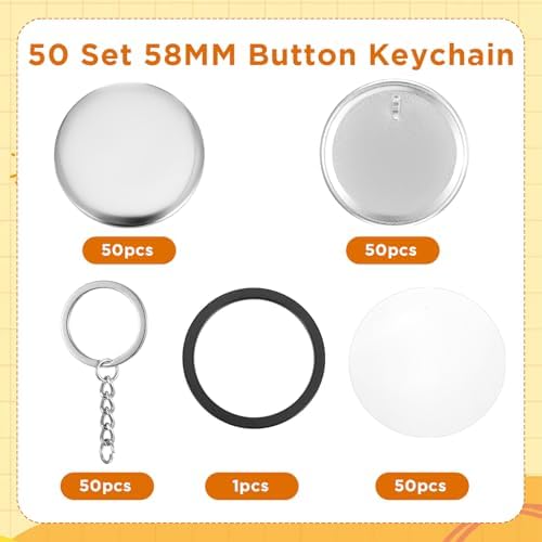 - 【Button Making Kit】Contains 50 sets of 58mm/2.25-inch button maker keychains, each set contains 50 badge bottom shells, 50 tinplate pin maker top covers, 50 plastic transparent films and 50 chain heads, suitable for all 58mm/2.25-inch button maker machines