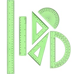 - Features: Applicable people: Green straight ruler is suitable for students, teachers, designers, architects, engineers, artists and other people. Gift: The geometry math ruler kit is a nice gift choice for friends, classmates, colleagues, relatives, family, students and more, suitable for holiday, birthday, and any holidays, sending your care and love. Specifications: Material: plastic Color: green Size: Straight ruler: 6 inch/ 15 cm, 12 inch/ 31 cm Protractor: 10 x 5.5 cm, 15.5 x 8.6 cm 60 Degree triangles: 12.6 x 7.3 cm 45 Degree triangles: 9.8 x 9.8 cm Package includes: 6 x Rulers Warm notice: Manual measurement, please allow slight errors on size. The colors may exist slight difference due to different screens. The product has pointed parts, please use it with care. Children under the age of 7 should use it with the help of their parents.
