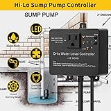 NEW GENERATION CONTROL WITH DUAL MODES: Upgraded from simple drainage, the Ortis water level controller now supports both drain and fill modes, along with three adjustable load running modes. Manually select the operation mode based on your specific setup. Bright LED indicators offer instant visibility of system status for easier monitoring and configuration HI-LO DUAL SENSORS WITH LONG LIFESPAN: Equipped with a patented high-low level sensor system using 304 stainless steel electrodes, resistant to corrosion, mineral build-up, and debris. Maintenance-free for up to 10 years. The adjustable sensor height allows for more control over pump cycling, helping conserve energy and extend pump life SAFE & STABLE OPERATION: Unlike traditional float switches that are prone to jamming or failure, this electronic controller features no moving parts, ensuring long-lasting, stable operation. Compact design enhances installation flexibility across various applications INTELLIGENT OVERLOAD & FAILURE ALERTS: Built-in safety features include automatic overload protection (activates when current exceeds 23A) and real-time alarms for pump failures, clogs, or abnormal discharge. Alarm can be silenced for up to 24 hours when needed UNIVERSAL COMPATIBILITY & EASY INSTALLATION: Supports all sump and utility pumps rated over 2Hp/20A. Easily replaces standard float switches without requiring plumbing changes. Ideal for use in sewage pits, water towers, and tanks, especially in confined or hard-to-access spaces