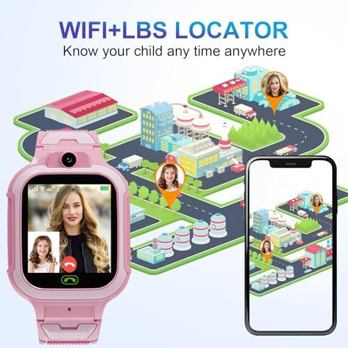 4G Kids Smart Watch GPS Tracker - Smartwatch with Two Way Call Video Calling Voice Chat SOS Class Mode Stopwatch Pedometer Games Wi-Fi Touch Screen Alarm Clock Smartwatches for Boys Girl (Pink)