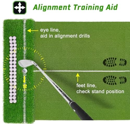 - 【Training Aid with Built-in Alignment Guides】Built-in alignment lines provide instant visual feedback to help improve swing path, accuracy, and consistency. A reliable golf training aid for golfers at any stage. It is compatible with most golf simulators, including popular systems like SkyTrak, Garmin and Rapsodo.