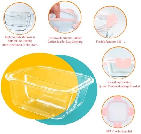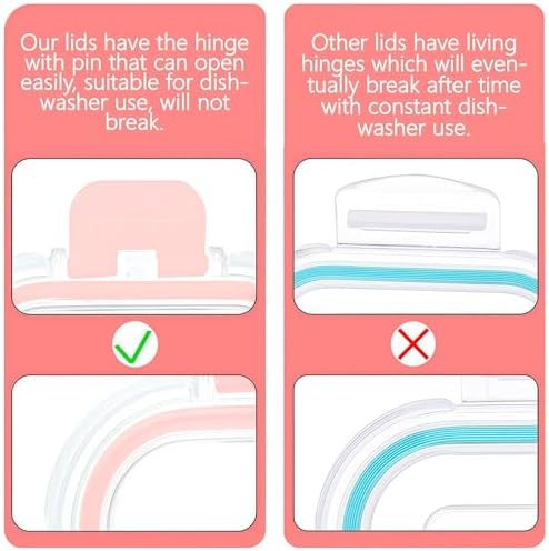 - Upgrade Airtight & Leakproof: Our glass food storage containers adopting four hinge pin locking system and rubber gasket sealing. Compared to other lids, our lids have the hinge with pin that can open easily, suitable for dishwasher use, will not break. Other bariatric meal prep containers sellers have living hinges which will eventually break after time with constant dishwasher use.